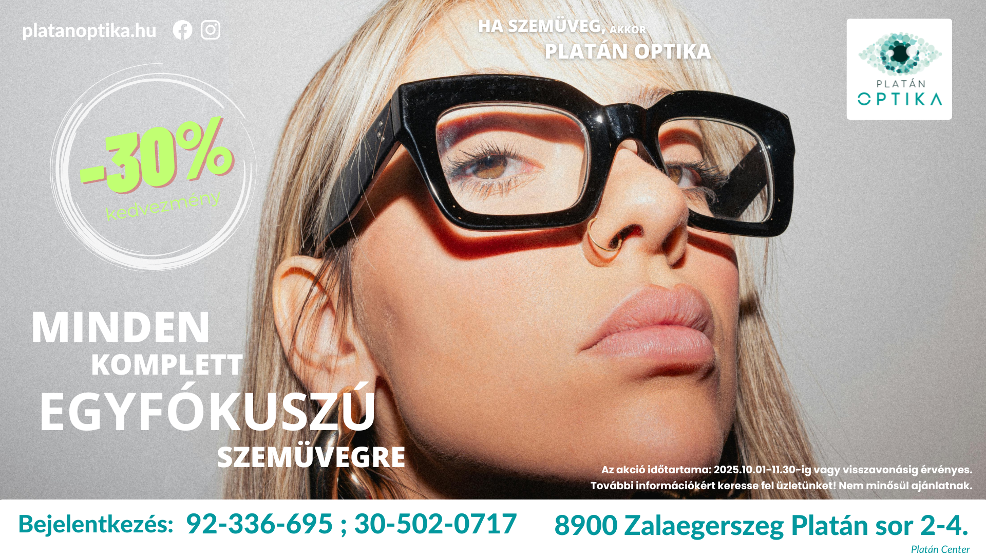 minden egyfókuszú komplett szemüveg vásárláskor a szemüveglencsékből 30% kedvezmény + minden szemüvegkeretre 30% kedvezmény